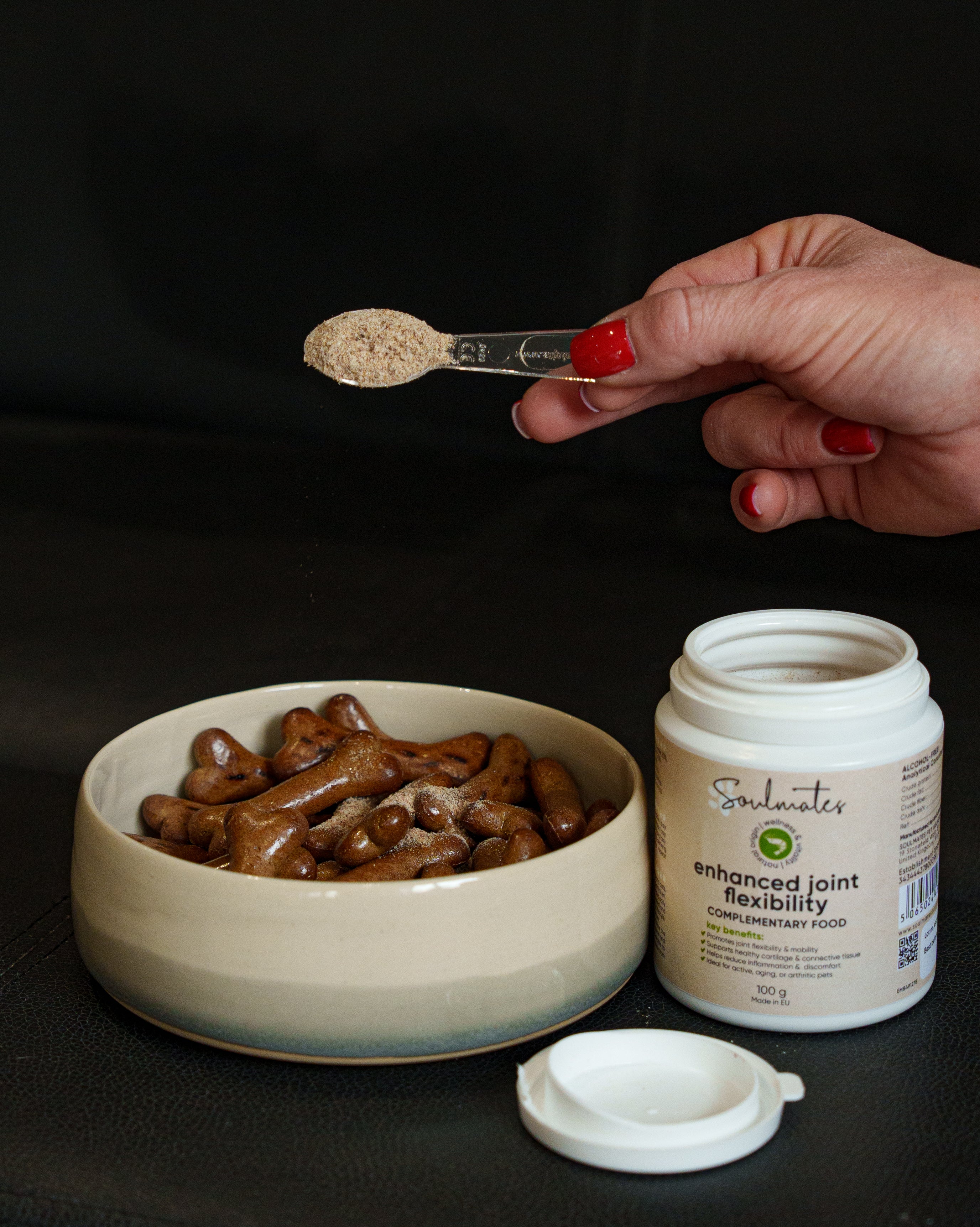 Designed for everyday wellbeing, this supplement helps your pet stay comfortable, resilient, and full of energy, whether young, senior, or recovering. Dose spoon included.